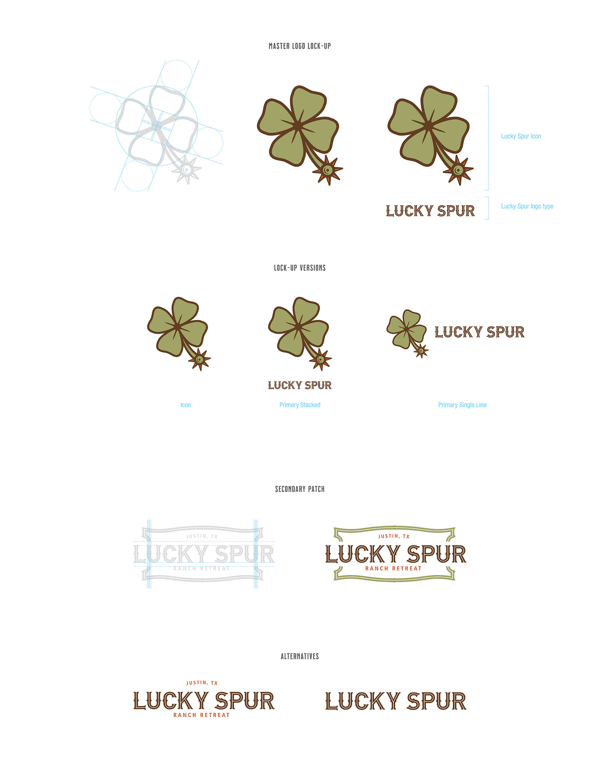 First order of business was to create an iconic mark that spoke to the Lucky Spur name. The icon was created to stand alone or using it's full master lock-up. The evolution of the identity grew to include an additional patch to be used as a secondary statement that speaks to the rustic appeal of the ranch. Collateral was created using bold colors taken from the palette used through out LuckySpur.